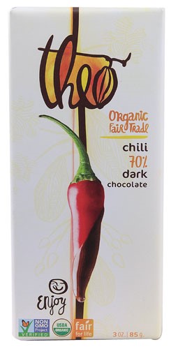 Theo Chocolate Organic 70% Dark Chocolate Bar Chili -- 3 oz