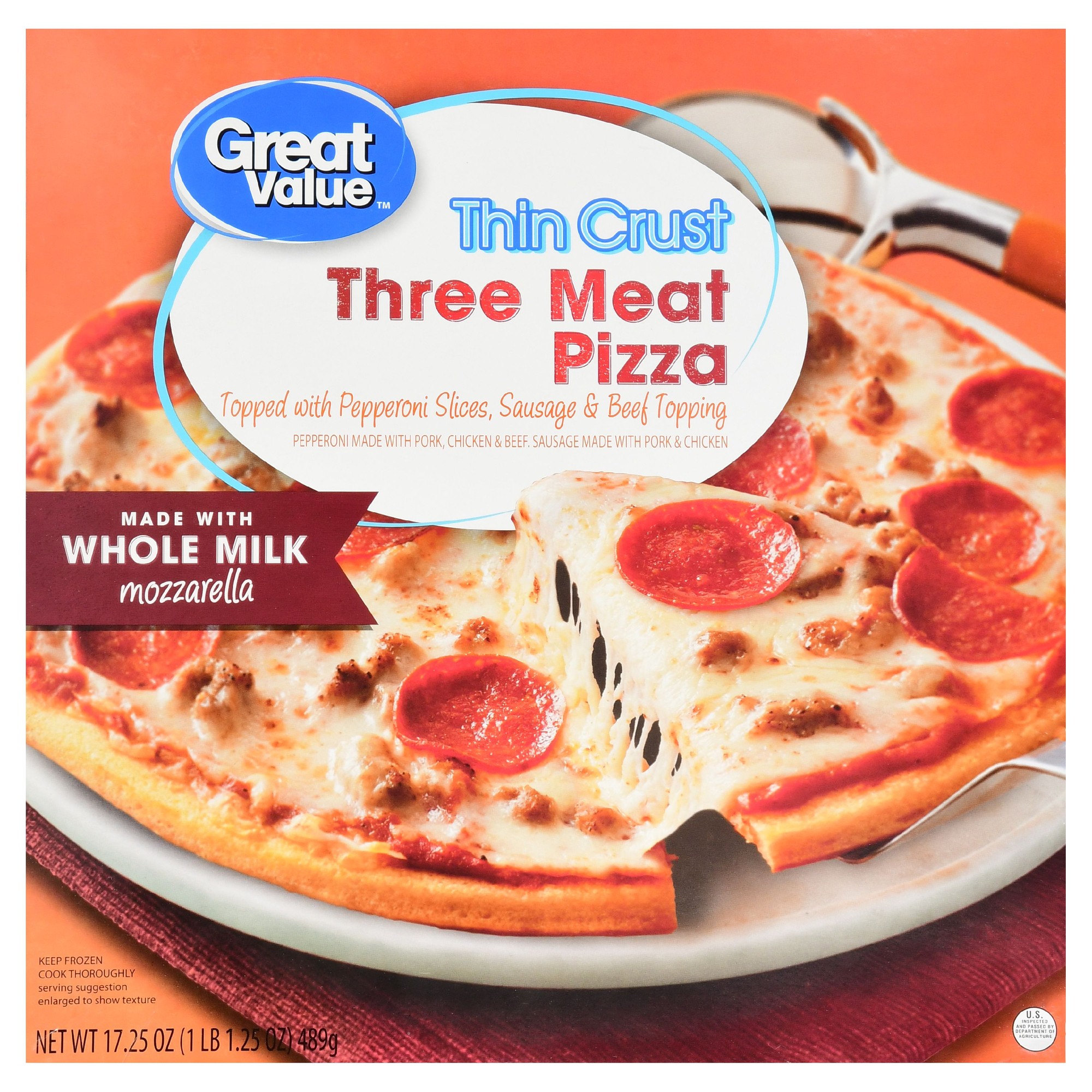 THIN CRUST THREE MEAT PIZZA TOPPED WITH PEPPERONI SLICES, SAUSAGE & BEEF TOPPING, THIN CRUST THREE MEAT PIZZA is available at 1 retailer