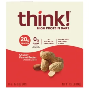 think! High Protein Bars, Chunky Peanut Butter, 2.1 oz Bar, 10 Count