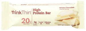 The thinkThin Protein Bars in the white chocolate flavor are a high protein meal alternative nutrition bar. They are made with soy and whey protein, and are naturally sugar-free and gluten-free. These bars are low carb and contain dark chocolate chips. They are also dairy-free, soy-free, vegan, and casein-free. The bars are slow digesting and make you feel full longer, making them suitable for long-term weight management. People appreciate the high protein content of these bars. The product comes in a pack of 10, with each bar weighing 21 ounces.