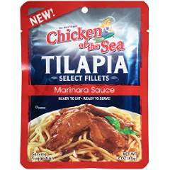TILAPIA, WATER, TOMATO, SUGAR, TOMATO PASTE, SALT, ONION, SOYBEAN OIL, GARLIC, YEAST EXTRACT, MODIFIED FOOD STARCH, SWEET BASIL LEAVES, DISTILLED VINEGAR, OREGANO, PAPRIKA OLEORESIN, BLACK PEPPER, XANTHAN GUM.