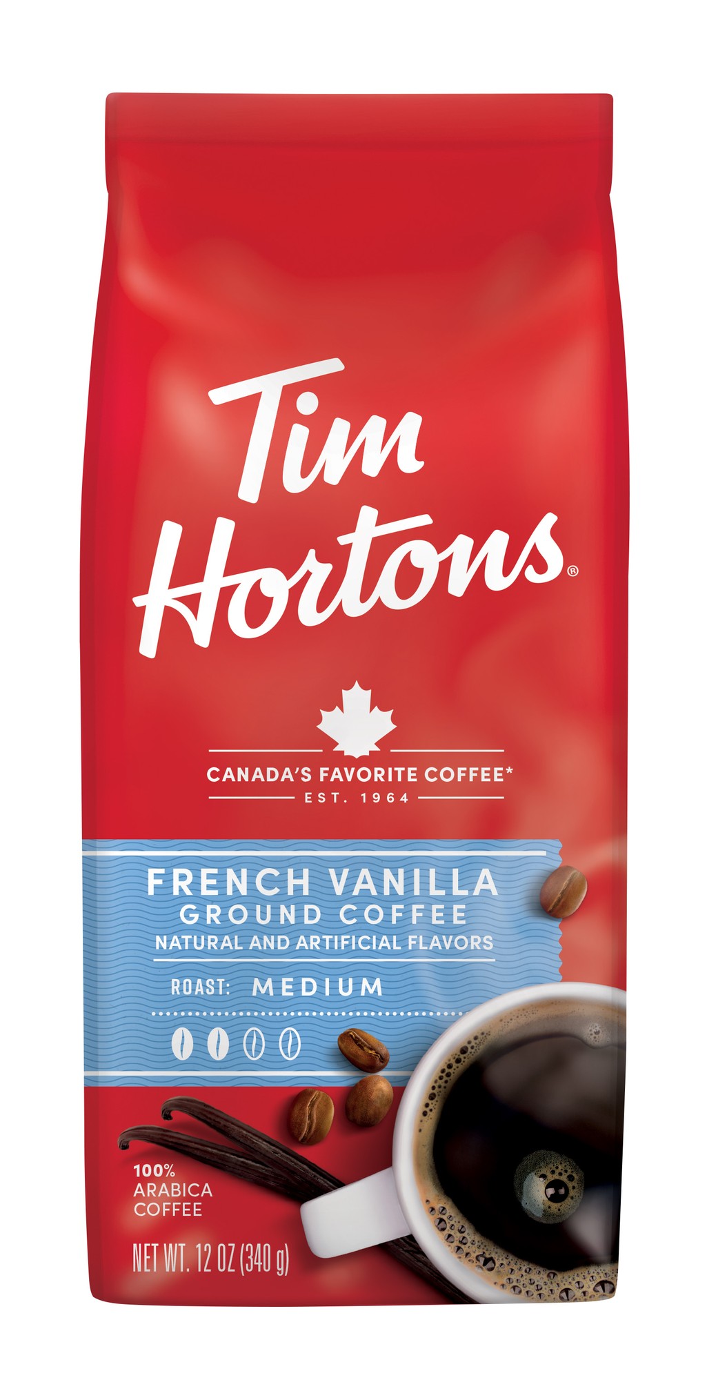 Tim Hortons Medium Roast Ground Coffee, French Vanilla, 12 Oz