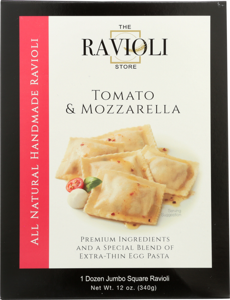 PASTA: SEMOLINA FLOUR, DURUM FLOUR, WATER, EGGS, SALT. FILLING: FRESH MOZZARELLA (WHOLE MILK, VEGETABLE RENNET), TOMATOES, BASIL, SALT & PEPPER