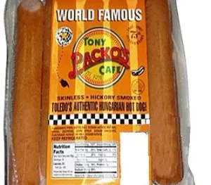 Tony Packos Cafe Toledo's Authentic Hungarian Hot Dog Skinless Hickory Smoked