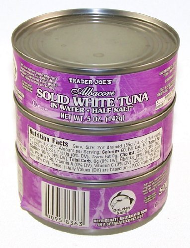 Trader Joe's Albacore Solid White Tuna in Water Half Salt 5oz Can (Pack of 3)