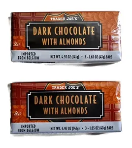 Trader Joe's Belgian Dark Chocolate with Almonds, 1.65 oz Bars (2 Packs of 3)