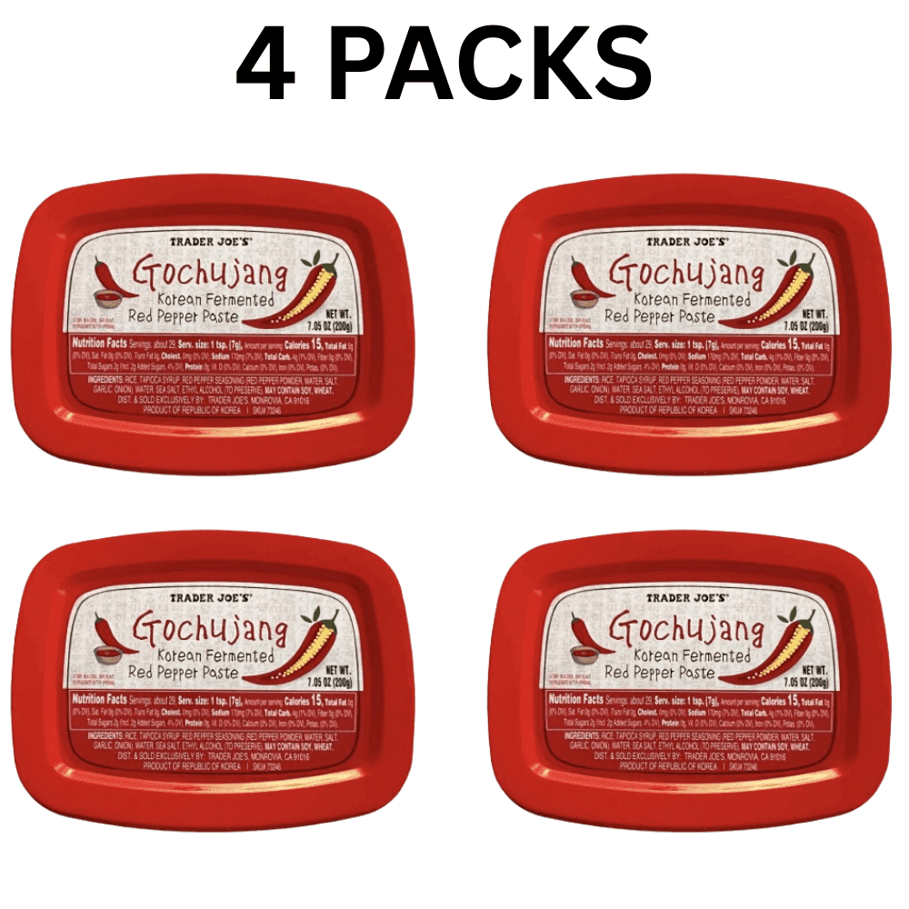 Trader Joe’s Gochujang Korean Fermented Red Pepper Paste 7.05 oz Authentic Korean Condiment Spicy, Sweet & Savory Umami Sauce Pack of 4
