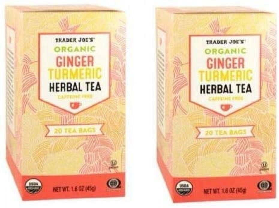 Trader Joes Organic Ginger Turmeric Herbal Tea 20 Envelopes Each - Pack Of 4 Packaging May Vary