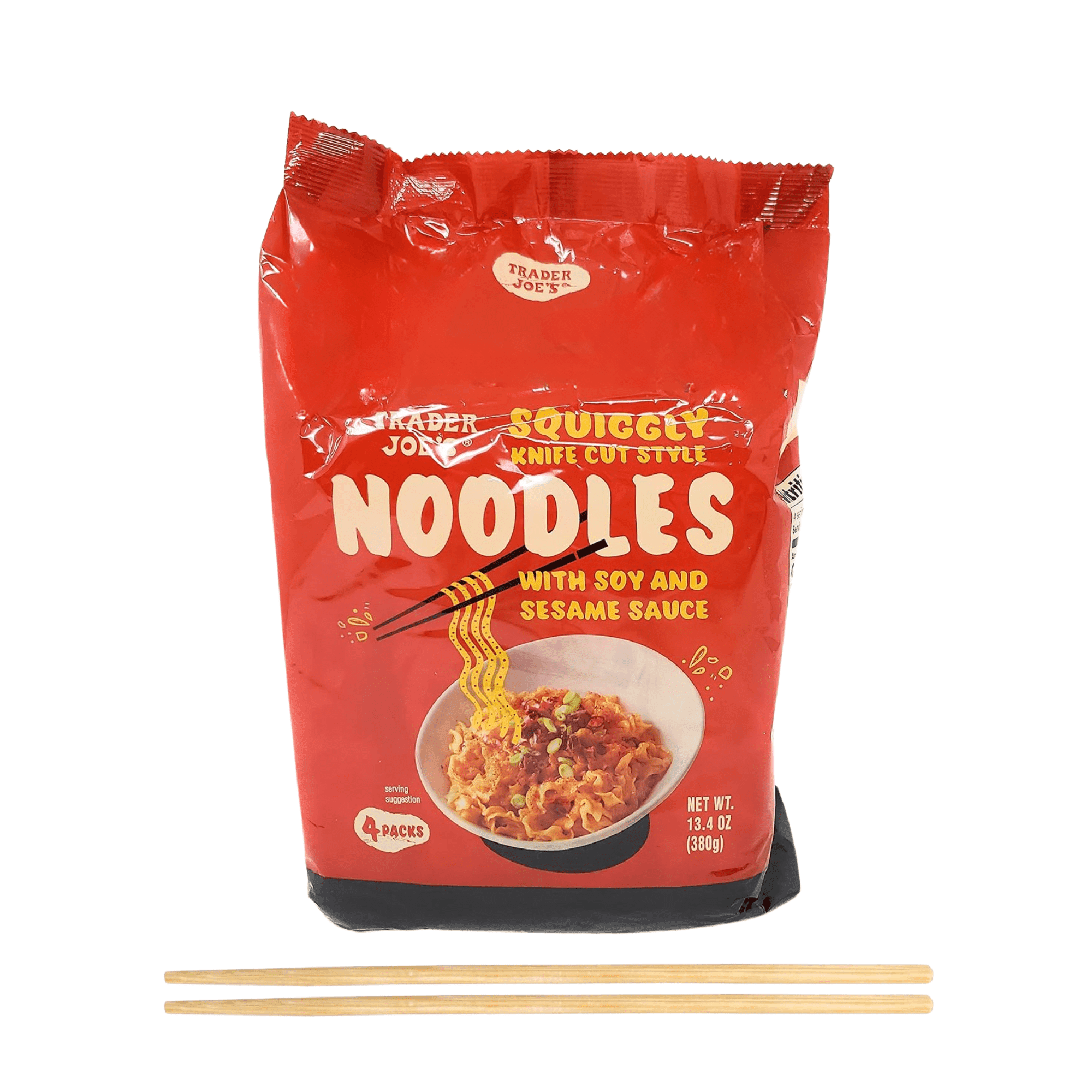 Trader Joe’s Squiggly Knife Cut Noodles with Soy & Sesame Sauce 13.4 oz with Wooden Chopsticks