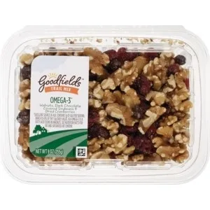 WALNUTS, DARK CHOCOLATE COVERED SOYBEANS (DARK CHOCOLATE [SUGAR, CHOCOLATE LIQUOR, COCOA BUTTER], SOY NUTS [SOYBEANS, SUNFLOWER OIL], GUM ARABIC, CORN SYRUP, CONFECTIONER'S GLAZE), DRIED CRANBERRIES (CRANBERRIES, SUGAR, CITRIC ACID, SUNFLOWER OIL, ELDERBERRY JUICE CONCENTRATE [COLOR]).
