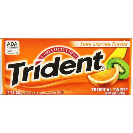 TRIDENT, SUGAR FREE GUM WITH XYLITOL, TROPICAL TWIST, TROPICAL TWIST