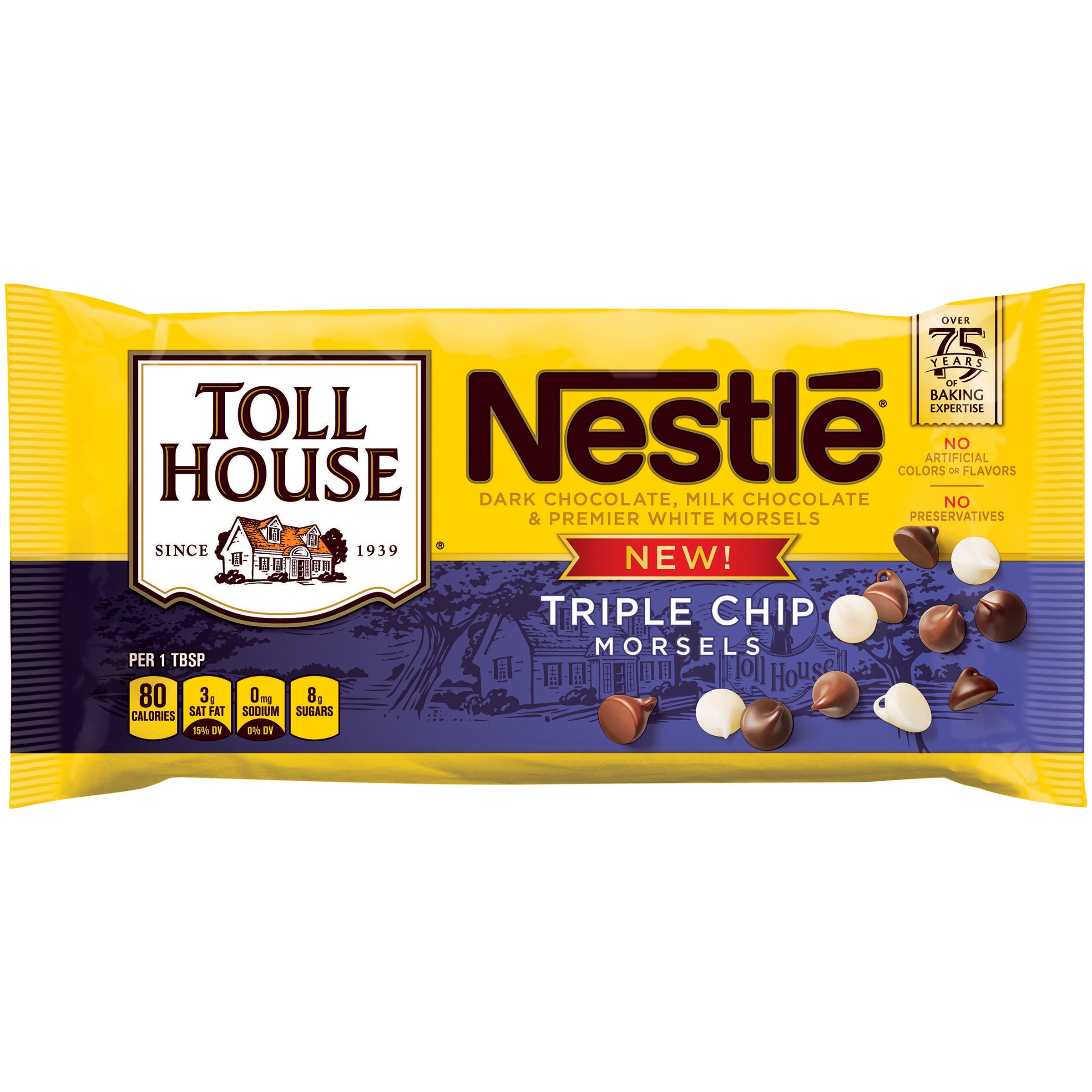 TRIPLE CHIP DARK CHOCOLATE, MILK CHOCOLATE AND PREMIER WHITE MORSELS, TRIPLE CHIP