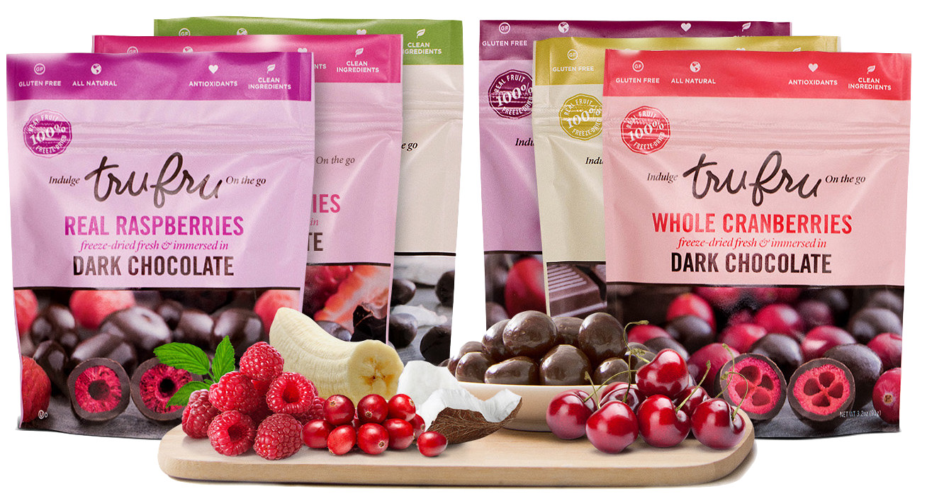 Tru Fru Dark Chocolate, Variety Pack, 6 Ct Raspberries, Cherries, Strawberries, Bananas, Cranberries and Coconut Melts Freeze Dried Fresh and Immersed in Premium Dark Chocolate is available at 1 retailer