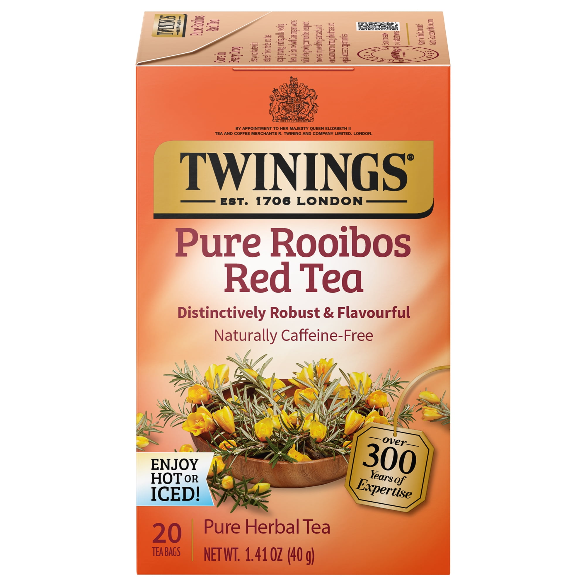 Twinings Pure Rooibos Red Herbal Tea Bags, Caffeine Free, 20 Count Box