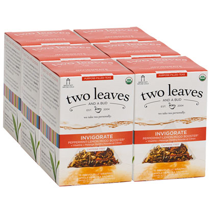 Two Leaves and a Bud, Inc., Organic Invigorate Peppermint-Lemon Mood Booster Herbal Tea, 15 Count