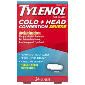 Tylenol Caplets for Adults Congestion Severe Cold + Head 24 ea