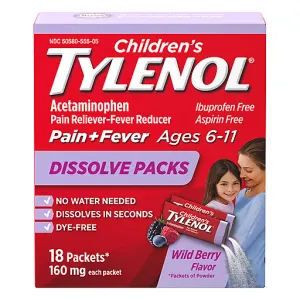 Tylenol Dissolve Packs Packets 160 mg Children's Wild Berry Flavor Pain + Fever 18 ea