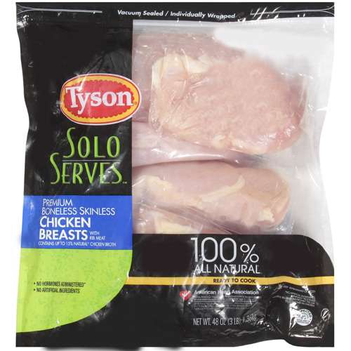 Tyson: Solo Serves Premium Boneless Skinless Breasts W/Rib Meat Chicken, 48 oz