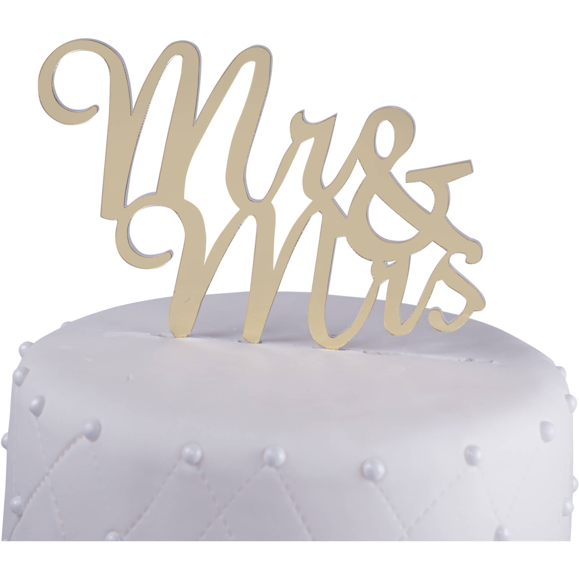 Unik Occasions "Mr. and Mrs." Acrylic Wedding Cake Topper Script, Gold Mirror