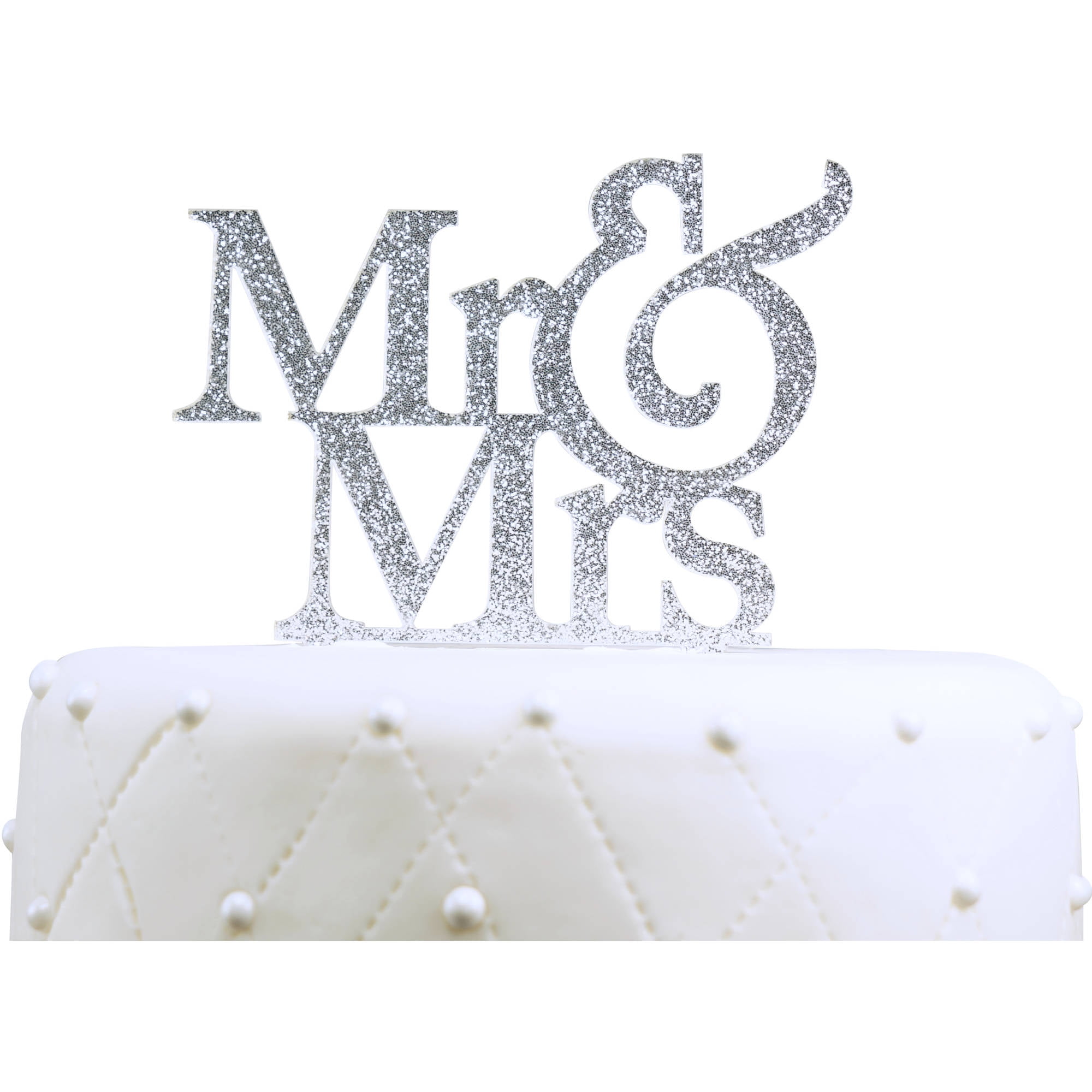 Unik Occasions "Mr. and Mrs." Large Acrylic Cake Topper, Silver Glitter