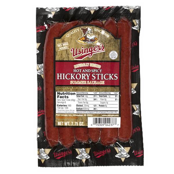 USINGER'S, HICKORY STICKS SUMMER SAUSAGE, HOT AND SPICY