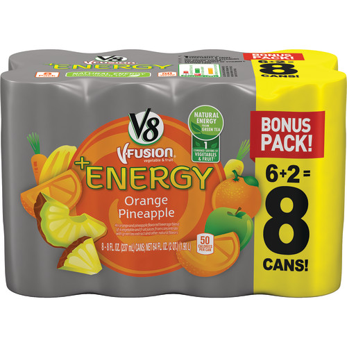 V8 +Energy, Healthy Energy Drink, Natural Energy from Tea, Orange Pineapple, 8 Ounce Can (Pack of 8)