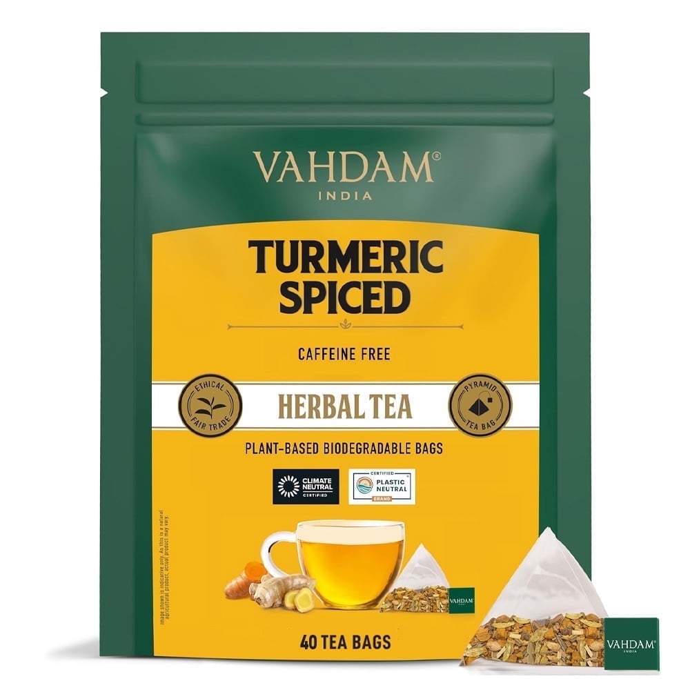 VAHDAM, Turmeric Spiced Herbal Tea Bags (40 Count) | Savory, Spicy & Pure Herbal Tea|Caffeine Free, Non GMO, Gluten Free, Eco-Friendly Tea Bags