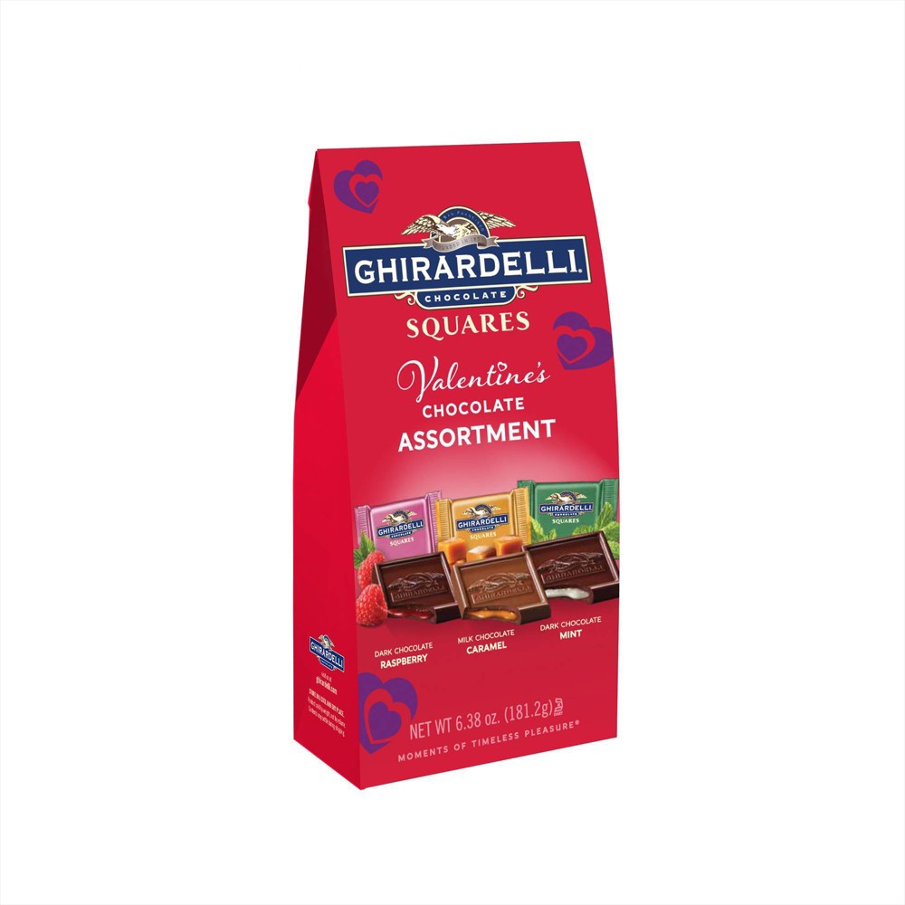 VALENTINE'S CHOCOLATE SQUARES ASSORTMENT, DARK CHOCOLATE RASPBERRY, MILK CHOCOLATE CARAMEL, DARK CHOCOLATE MINT is available at 1 retailer