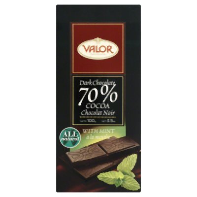 Valor Chocolates Dark Chocolate 70% W/ Mint, 3.5 Oz