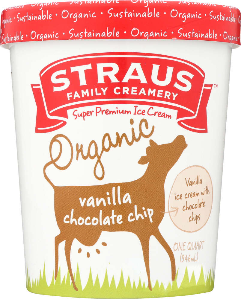 VANILLA CHOCOLATE CHIP SWEET CREAM, ORGANIC VANILLA & RICH CHOCOLATE CHIPS SUPER PREMIUM ICE CREAM, VANILLA CHOCOLATE CHIP