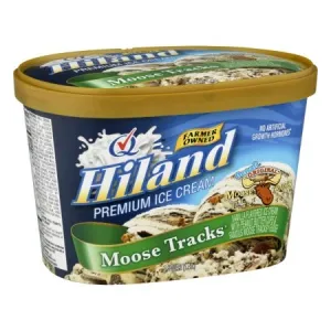 VANILLA FLAVORED ICE CREAM WITH PEANUT BUTTER CUPS & FAMOUS MOOSE TRACKS FUDGE, MOOSE TRACKS