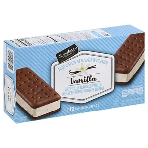 VANILLA FLAVORED VANILLA ICE CREAM WITH CHOCOLATY WAFERS ICE CREAM SANDWICHES, VANILLA