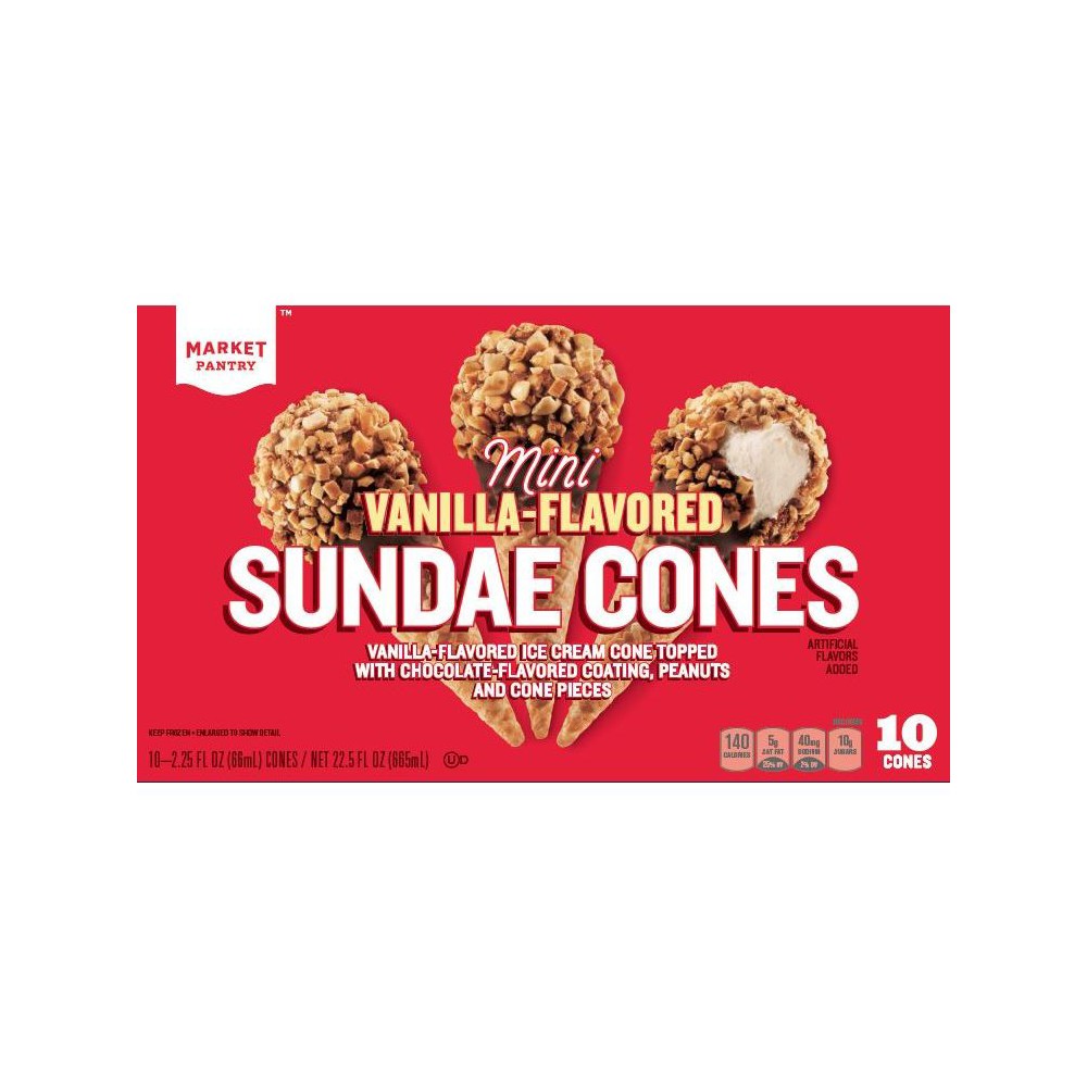 VANILLA ICE CREAM CONE TOPPED WITH CHOCOLATE-FLAVORED COATING, PEANUTS AND MINI SUNDAE CONE PIECES is available at 1 retailer