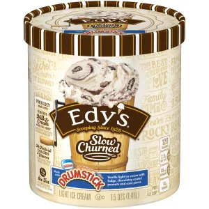 VANILLA LIGHT ICE CREAM WITH FUDGE, CHOCOLATEY COATED PEANUTS AND CONE PIECES MADE WITH DRUMSTICK, VANILLA