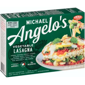 VEGETABLE LASAGNA GARDEN VEGETABLE MEDLEY LAYERED BETWEEN PASTA, RICOTTA AND VINE-RIPENED TOMATO SAUCE, TOPPED WITH MOZZARELLA AND ROMANO, VEGETABLE LASAGNA