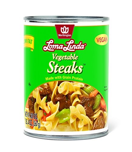 STEAKS: WHEAT GLUTEN WITH WATER FOR HYDRATION, CARAMEL COLOR. BROTH: WATER, SALT, YEAST EXTRACT, HYDROLYZED SOY PROTEIN, DEXTROSE, CARAMEL COLOR, VITAMINS AND MINERALS (NIACINAMIDE, IRON [FERROUS SULFATE], VITAMIN B1 [THIAMIN MONONITRATE], VITAMIN B6 [PYRIDOXINE HYDROCHLORIDE], VITAMIN B2 [RIBOFLAVIN], VITAMIN B12 [CYANOCOBALAMIN ]), MONOSODIUM GLUTAMATE, CELERY EXTRACT.