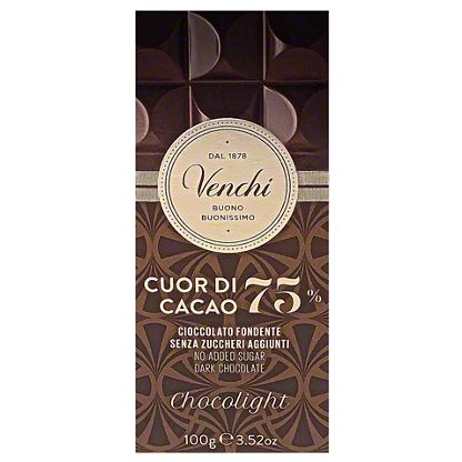 Venchi Cuor Di Cacao 75% Extra Dark Chocolate Bar, 3.52 Oz