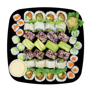 SUSHI RICE WATER, WHITE RICE, SUSHI VINEGAR (SUGAR, RICE VINEGAR, WATER, SALT, CITRIC ACID, KELP EXTRACT (KELP EXTRACT, SORBITOL, MALTITOL, HYDROGENATED STARCH HYDROLYSATES, ALCOHOL, SALT, XANTHAN GUM)), AVOCADO, PICKLED GINGER (GINGER, WATER, SALT, SUGAR VINEGAR), CUCUMBER, CARROTS, LETTUCE, SEAWEED, SESAME SEEDS.