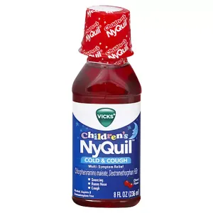 Vicks NyQuil Children’s Cold and Cough Medicine, 8 oz, Cherry Flavor, Relieves Sneezing, Runny Nose, and Cough