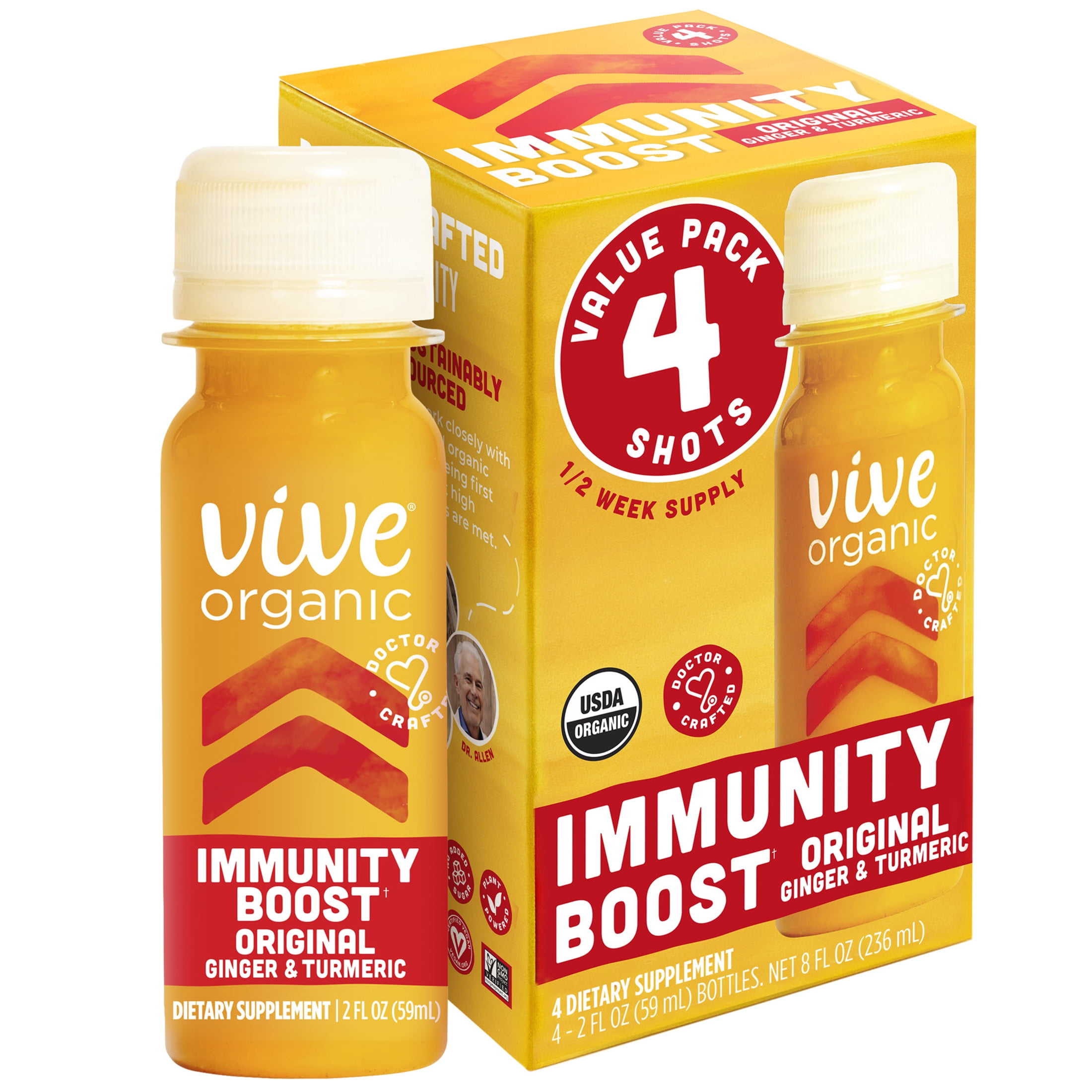 Vive Organic Immunity Boost Shot, Original Ginger and Turmeric Wellness Shot, 2 fl oz Bottles, 4-Pack