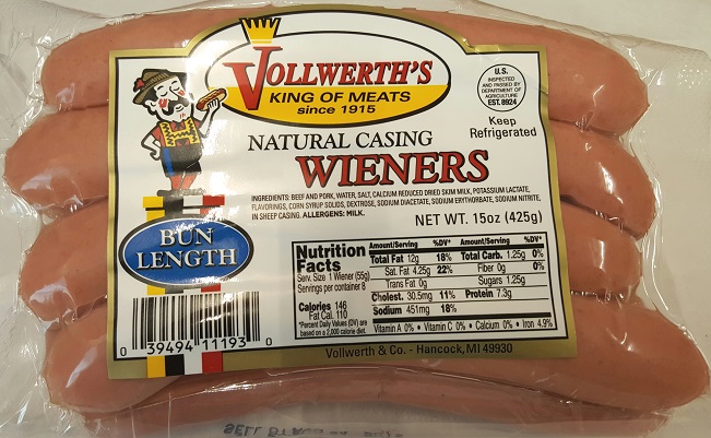 Vollwerth's Bun Length Nat Cas Hot Dogs, 15 Oz.