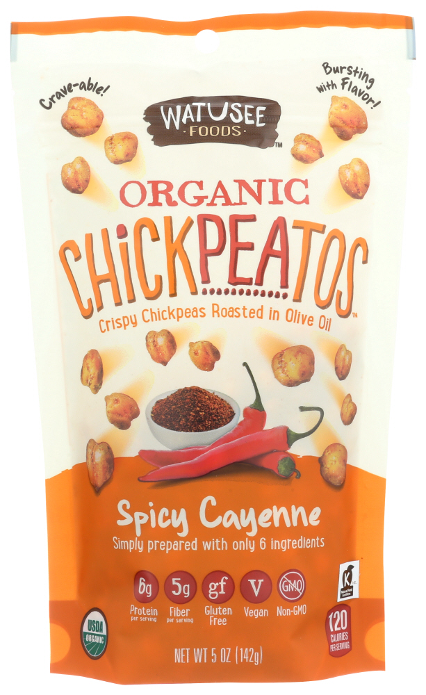 WATUSEE FOODS, CHICKPEATOS CRISPY CHICKPEAS ROASTED IN OLIVE OIL, SPICY CAYENNE