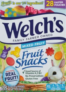 Fruit Puree (Grape, Peach, Orange, Strawberry, And Raspberry), Corn Syrup, Sugar, Modified Corn Starch, Gelatin, Concord Grape Juice From Concentrate, Citric Acid, Lactic Acid, Natural And Artificial Flavors, Ascorbic Acid (Vitamin C), Alpha Tocopherol Acetate (Vitamin E), Vitamin A Palmitate, Sodium Citrate, Coconut Oil, Carnauba Wax, Annatto (Color), Turmeric (Color), Red 40, Blue 1