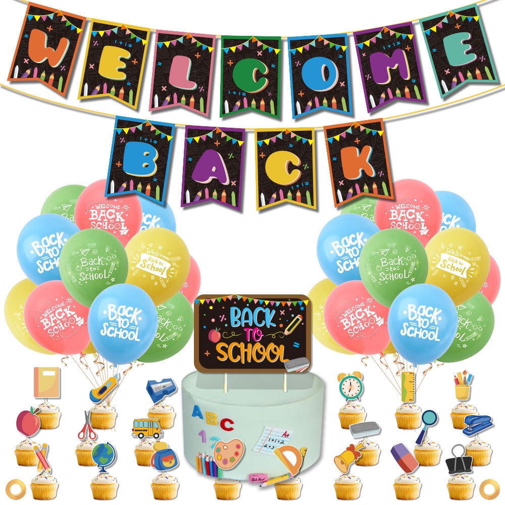 Welcome Back to School Decorations for Classroom with Back To School Balloons Banner Cake Topper for First Day Of School Supplies