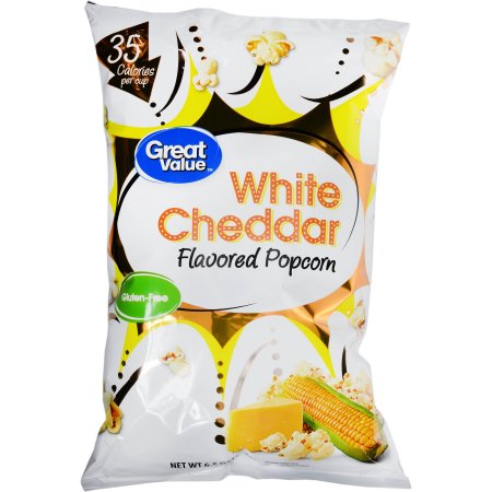 WHITE CHEDDAR FLAVORED POPCORN, WHITE CHEDDAR
