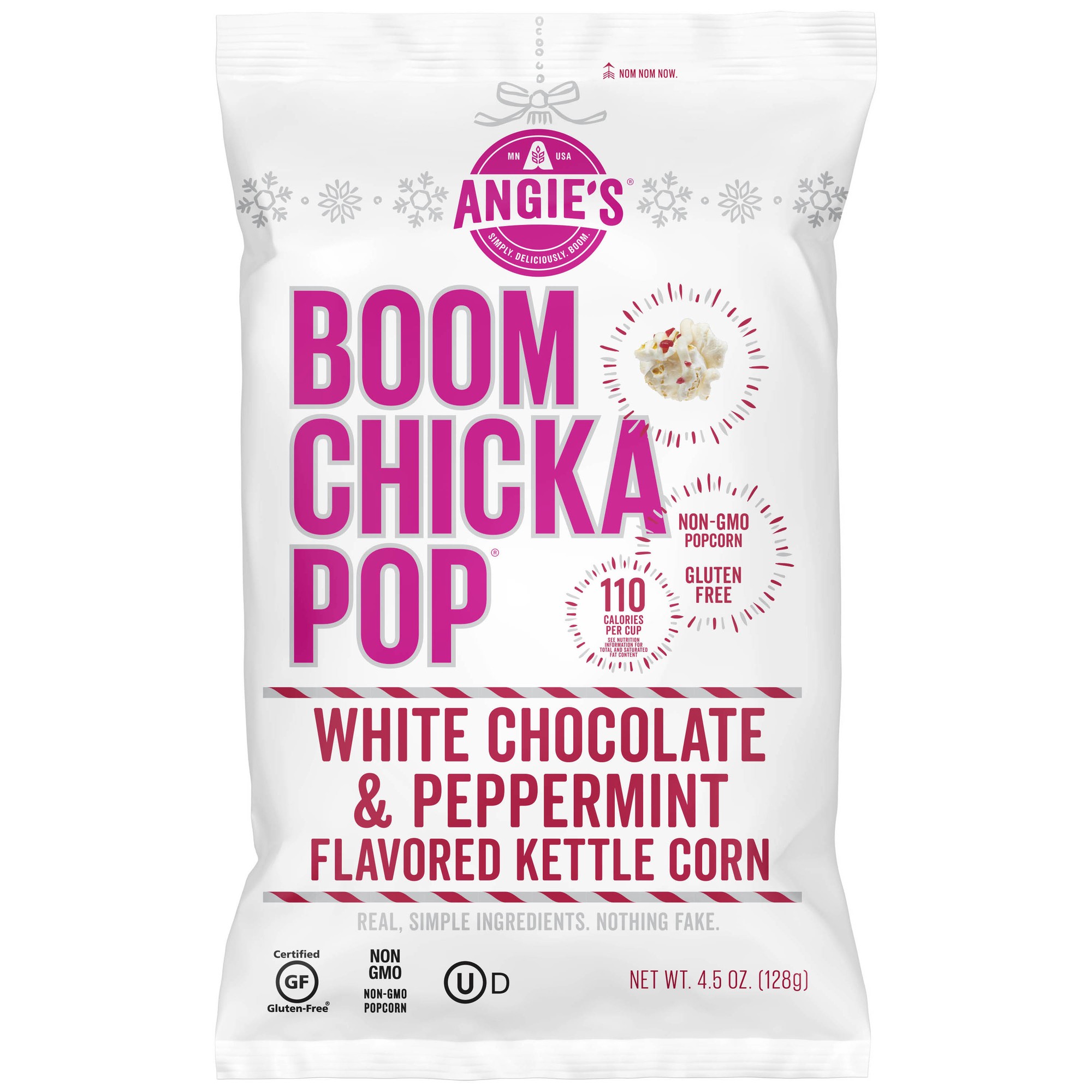 Light, airy popcorn with a smooth white-chocolate drizzle and crisp peppermint notes offers a balanced sweet-and-mint flavor and crunchy texture. Commonly used for movie nights, holiday treats, seasonal party snacks, or gifting; reviewers mention satisfying crunch, clear mint flavor, festive appeal, and convenient portioning for sharing at events during holidays.