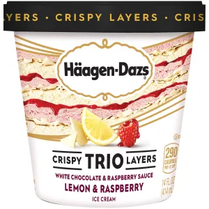Raspberry Ice Cream: Cream, Skim Milk, Sugar, Raspberry Puree, Egg Yolks, Lemon Juice Concentrate, Natural Flavor, Pectin. Lemon Ice Cream: Cream, Skim Milk, Sugar, Egg Yolks, Corn Syrup, Lemon Juice Concentrate, Lemon Extract. White Chocolate with Vegetable Oil: Sugar, Cocoa Butter, Nonfat Dry Milk, Coconut Oil, Skim Milk, Soy Lecithin, Vanilla Extract. Raspberry Swirl: Raspberry Puree, Sugar, Water, Lemon Juice Concentrate, Pectin, Natural Flavor.