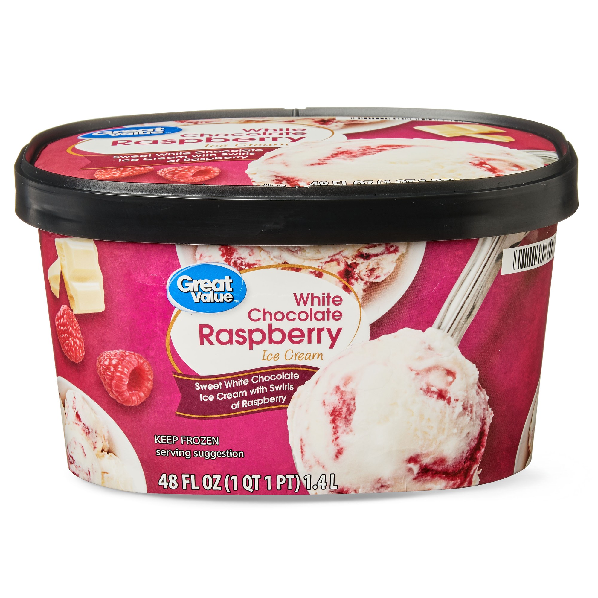 WHITE CHOCOLATE RASPBERRY SWEET WHITE CHOCOLATE ICE CREAM WITH SWIRLS OF RASPBERRY, WHITE CHOCOLATE RASPBERRY