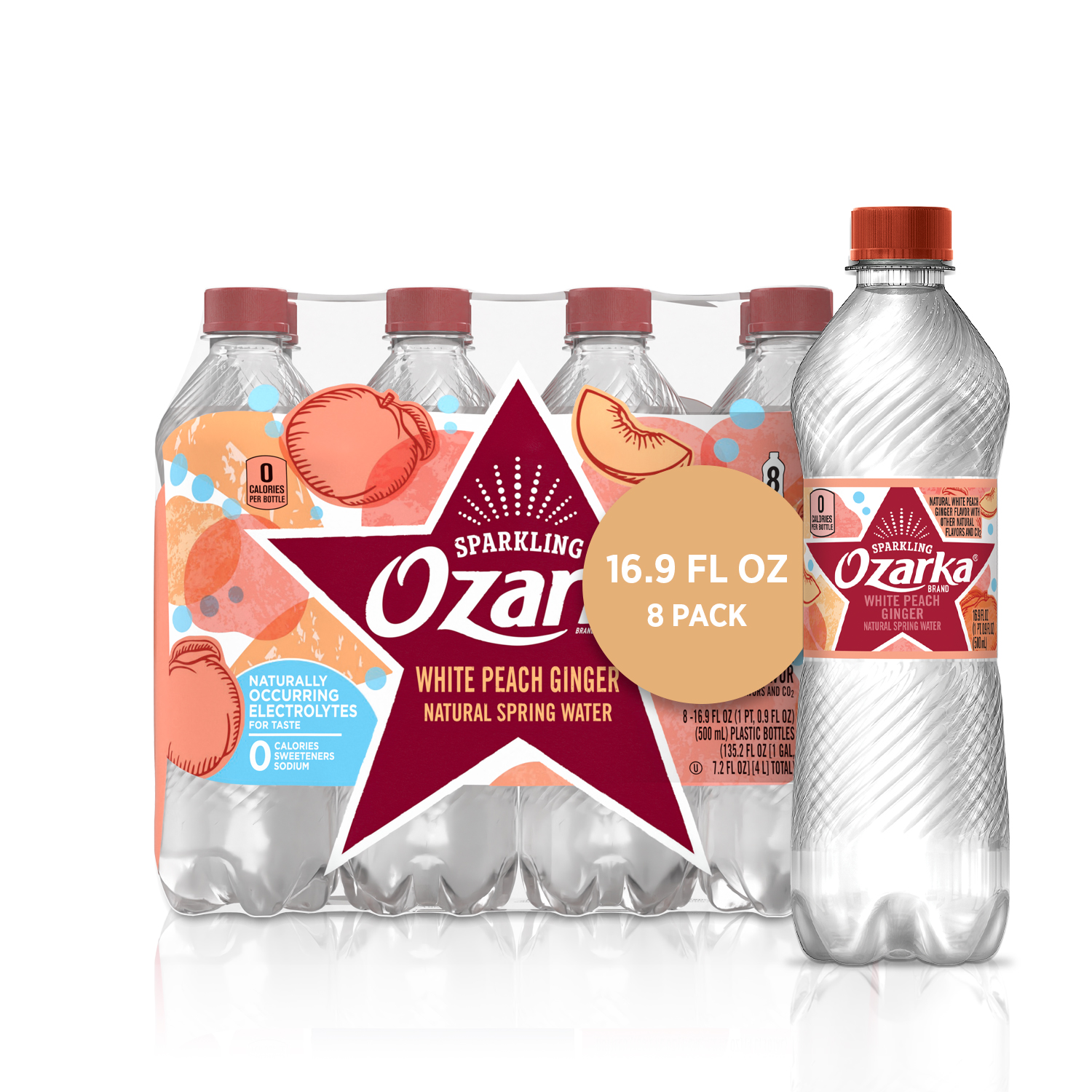 WHITE PEACH GINGER FLAVOR SPARKLING NATURAL SPRING WATER, WHITE PEACH GINGER