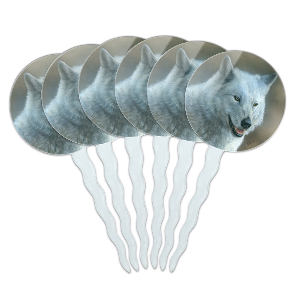 White Wolf Growling Cupcake Picks Toppers Decoration Set of 6